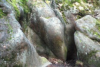 The trail is marked with blue paint and numbered cone symbols and it is pretty easy to follow. I gather that the moss-covered rocks on the side of the narrow road must have been at the bottom of the ancient Vuoksi riverbed.