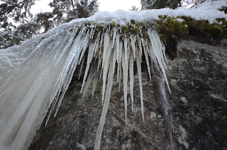 There are huge blocks of ice hanging down from the rocks as well as sharp icicles on my left. The gorge isn't huge but I think small is beautiful.